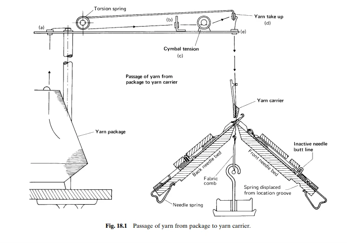It can be seen that a characteristic of the flat machine is the large number of ends of yarn that may be knitted at the same time. However, if light-weight structures are required, the number of ends may be much fewer.